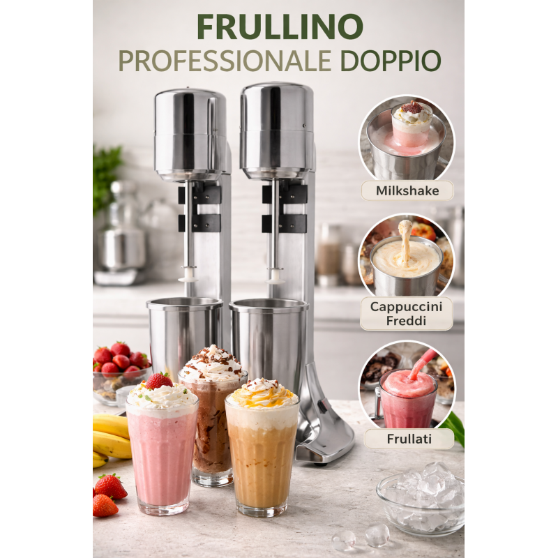 Frullino Frappè con due bicchieri 900 cc inox